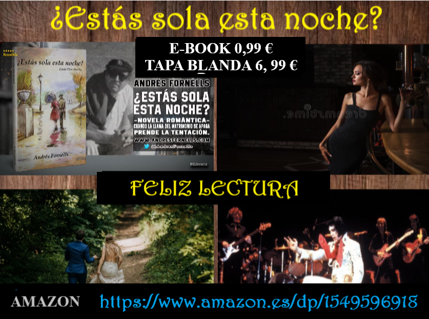 Si te ha gustado este breve relato quizás te gustará leer mi libro ¿ESTÁS SOLA ESTA NOCHE? Un libro romántico, sentimental y dramático. Cuando un hombre y una mujer descubren el gozo de un amor prohibido, sufren el castigo y la condena de una sociedad rigurosa que no perdona a todo el que no se rige bajo sus estrictas, intolerantes y despiadadas normas. https://www.amazon.es/dp/B01N4WM6LO