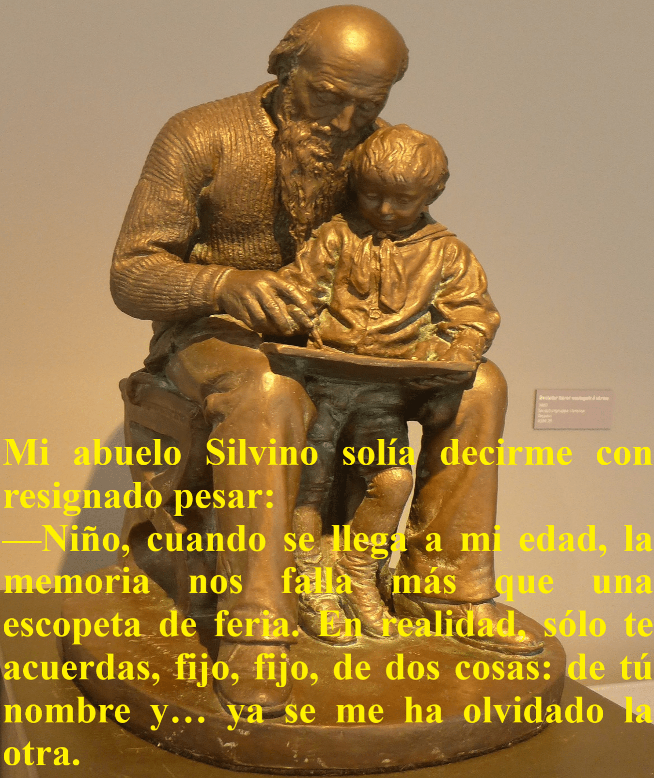 Una de tantas maravillas que podemos agradecer a la memoria es que, a menudo puede regalarnos momentos entrañables de nuestra vida sin que nosotros los hayamos estado buscando. En cierta ocasión, siendo yo todavía muy niño, una vecina que era muy desdichada con su marido vino a pedirle consejo a